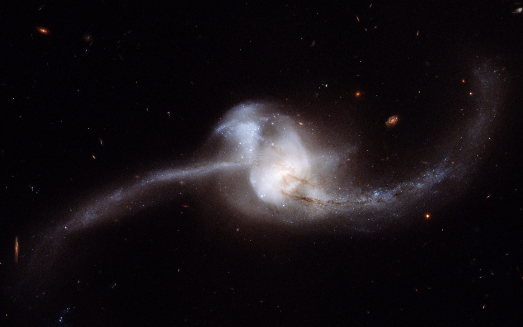 تصاویری از تلسکوپ هابل: وحدت دو کهکشان (بسیار شبیه به کهکشان راه شیری) در صورت فلکی خرچنگ (سرطان) و در فاصلۀ 250 میلیون سال نوری از زمین.