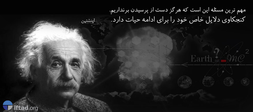 مهمترین مساله این است که هرگز دست از پرسیدن برنداریم. کنجکاوی دلایل خود را برای ادامه حیات دارد. <آلبرت اینشتین>