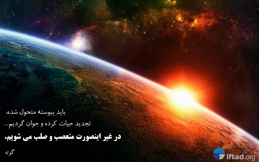 باید پیوسته متحول شده، تجدید حیات کرده و جوان شویم. در غیر این صورت متعصب و صلب می شویم. <گوته>